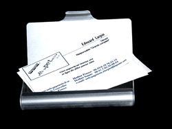 visite très efficacement tout en les rangeant dans votre poche. Un produit indispensable pour un voyageur. Idéal pour les cartes de visite « classiques » de Web Papeterie. Capacité : 50 cartes de visite à peu prés. Prix (envoi compris): France 11,10 € International 12,95 € |