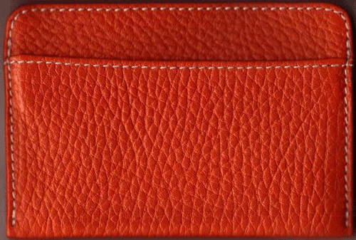 Pochettes cartes de visite en cuir véritable rouge, surpiqûre blanche